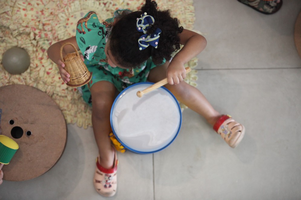 Patrícia Serra, coordenadora do CEI Ana Amélia, conta que as crianças escutam músicas africanas na hora da brincadeira livre, têm apresentações de grupos de capoeira e um espaço chamado “Cantinho da Diversidade” para debater as relações étnico-raciais, ouvir e ler histórias que retratam personagens negros.